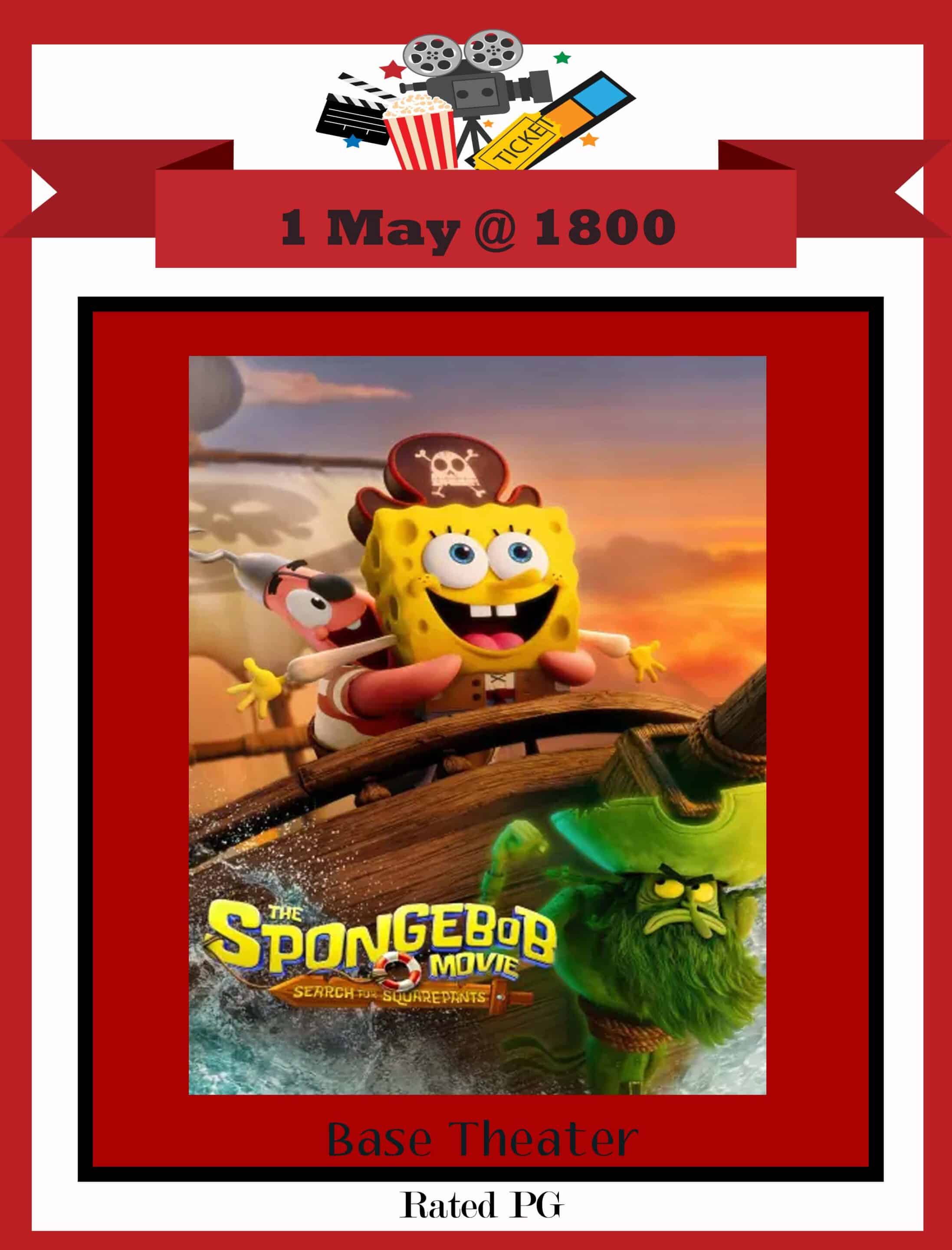 Enjoy a free showing of the movie The SpongeBob Movie: Search for SquarePants rated PG at your Base Theater. Concessions will be available. For more information, please call 580-481-6600.
